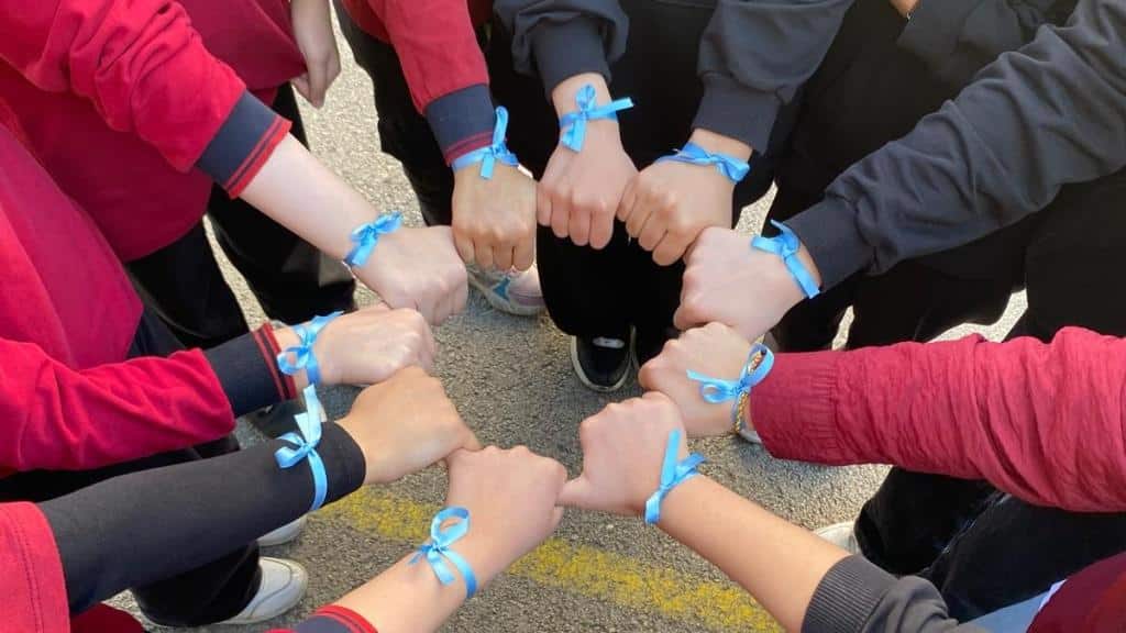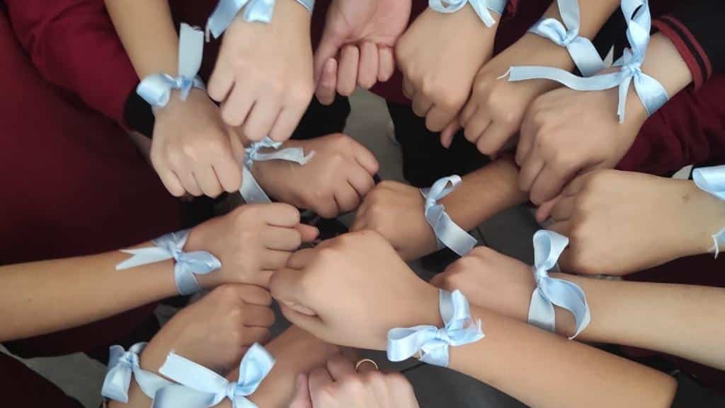 Filistin' de yaşanan soykırıma karşı, mazlum Filistin halkına insani yardım ulaştırmak ve İsrail ablukasını kırmak için 50 farklı ülkeden aktivistlerin, gönüllülerin katıldığı şimdiye kadar hazırlanan en büyük yardım filosu KÜRESEL SUMUD GEMİSİ (GLOBAL SUMUD FLOTİLLA)' ne desteğimizi sunmak amacıyla öğrenci ve öğretmenlerimiz ' TURKUAZ KURDELE ETKİNLİĞİ' gerçekleştirdi.